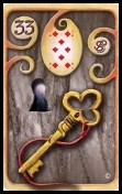 Key New goals, solving of problems. Card shows that you have found a solution or you will find it later. If the card is surrounded the adverse cards, the decision has not yet been found, or you did it wrong. In love - new level of relationship, avoiding stereotypes.
