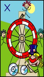 The Wheel of Fortune It's important to be aware that in nearly all instances, we do make a contribution in some way to what is happening in our lives. It is rare for things to just happen or for us to be a truly blameless victim in a situation. Accept whatever your fair share of responsibility is for the situation you are currently facing, be accountable to yourself if to no one else, and move on. Sometimes things do just happen, if that is the case - rest assured you are by no means alone in that experience, and reach out for support. The support you need is truly always available.